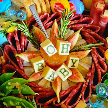 Presenting this STUNNING Custom Gourmet Platter to your celebration is a wonderful compliment to the Baby Shower, Gender Reveal, Welcoming the New Baby to the Family party.